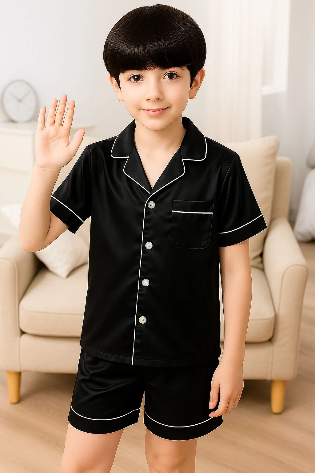 El lujo se une a la sencillez. Confeccionado con la más fina seda premium, este pijama de color sólido ofrece un confort superior y una elegancia atemporal. Nuestra Pijama Seda Para Niños es hipoalergénica, suave y diseñado para un descanso profundo y reparador.